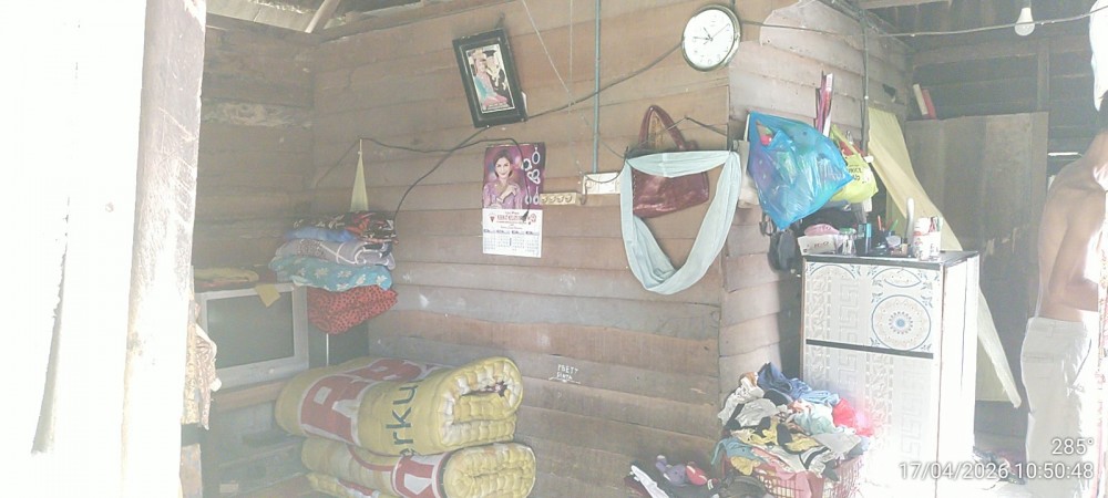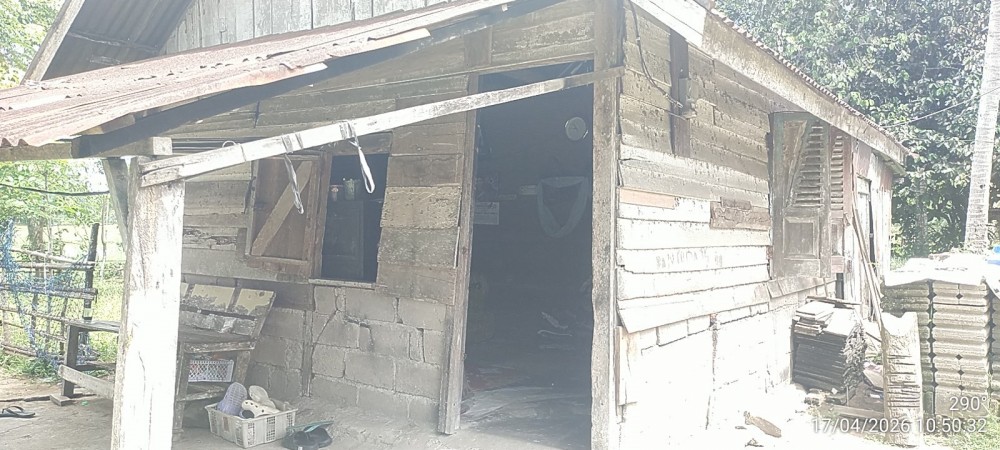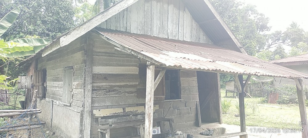 Rumah yang mereka tempati jauh dari kata layak. Berukuran sekitar 7x4 meter, dindingnya hanya terbuat dari batang kelapa yang telah lapuk dimakan rayap. Atap seng bekas yang menutupi rumah itu pun bocor di banyak titik, membuat air hujan dengan mudah masuk ke dalam. Lantainya masih berupa tanah keras yang hanya dialasi karpet plastik usang dan robek.